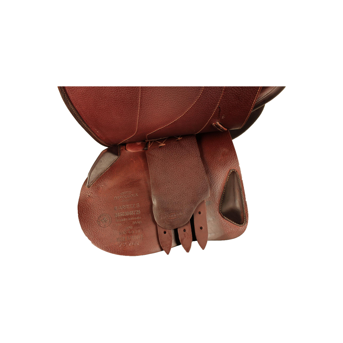 Reinigen Sie Ihr Lederzeug nach jedem Gebrauch mit der Devoucoux Belharra Lederseife und dem Lammfellhandschuh oder einem feuchten Schwamm, um Verunreinigungen zu entfernen. Tragen Sie die Lederseife niemals direkt auf das Leder auf.