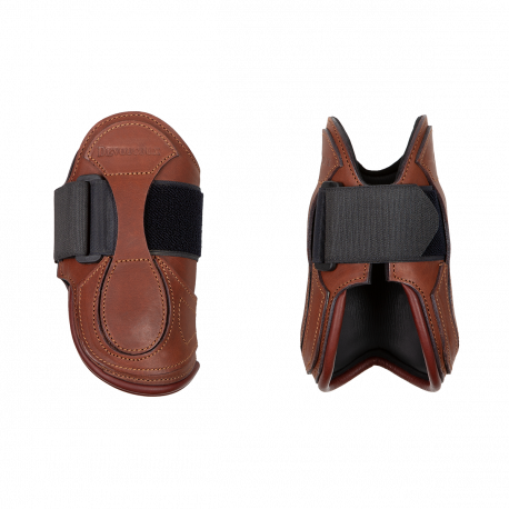 Les protège-boulets Polo, en cuir avec fixation Velcro®, sont adaptés pour l’entraînement et le travail quotidien. Ils combinent facilité d’utilisation et efficacité de la protection grâce à leur forme rehaussée qui protège la base du tendon. Les Velcro® sont amovibles et remplaçables. Ils sont doublés de mousse Néoprène® pour un entretien facile à l’eau.