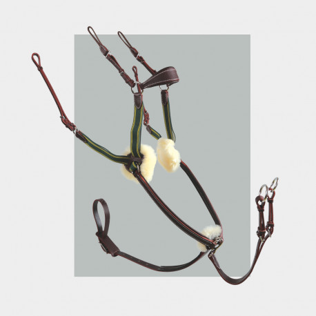 Le Kolibri combine les actions d’une bricole et d’un collier de chasse. Ses cinq points d'attache assurent une stabilité et une fixité optimale sans restreindre les épaules du cheval. Son doublage veau garantit le confort du cheval. Les pièces en mouton ont amovibles pour faciliter le nettoyage. Il est équipé d’une fourche martingale à anneaux amovibles.