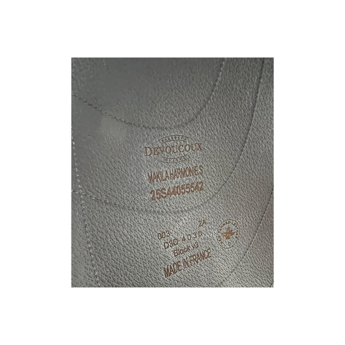 After each use, clean the leather with Devoucoux Belharra soap and the sheepskin glove or a damp sponge to remove impurities. Never apply soap directly to the leather.