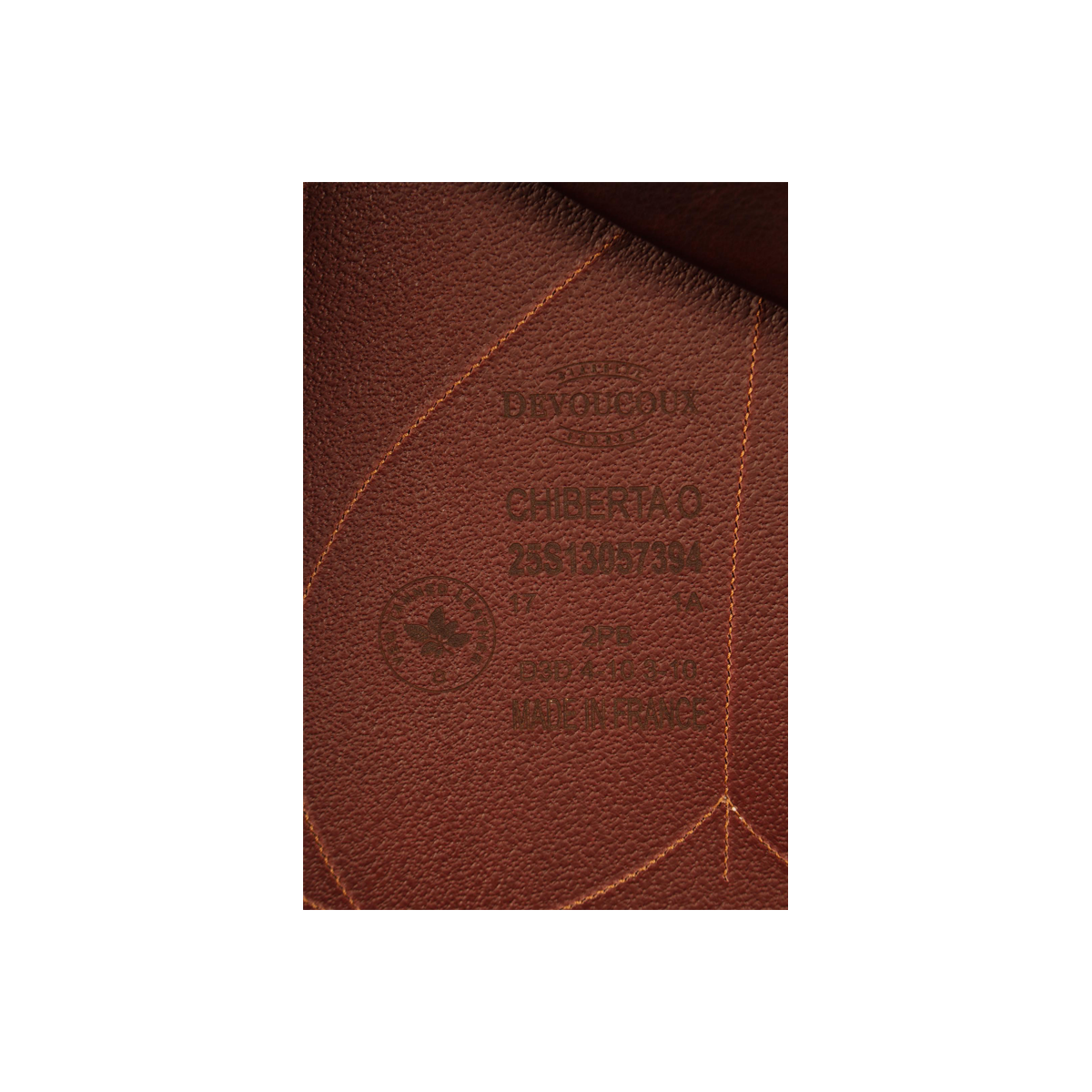 After each use, clean the leather with Devoucoux Belharra soap and the sheepskin glove or a damp sponge to remove impurities. Never apply soap directly to the leather.