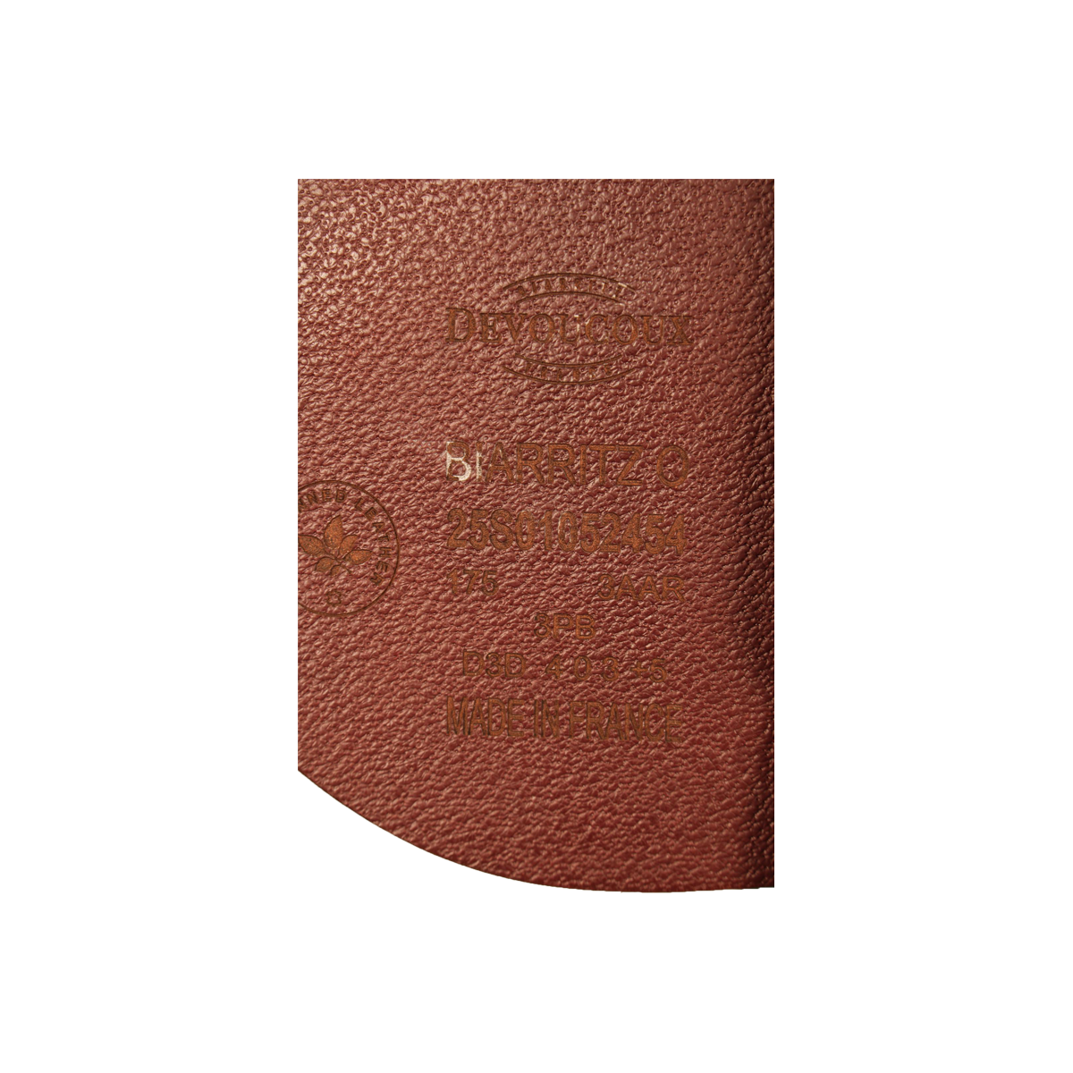 After each use, clean the leather with Devoucoux Belharra soap and the sheepskin glove or a damp sponge to remove impurities. Never apply soap directly to the leather.