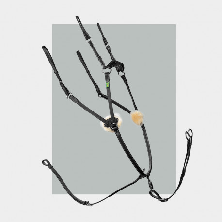 The Biarritz Kolibri is specially designed for jumping specialists and displays a fine and elegant finish. It combines the actions of a breast plate and breast collar. Five fastening points ensure maximum stability and immobility without restricting the horse’s shoulder movements. It is equipped with a removable elastic running martingale attachment.
