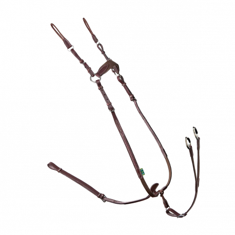 The 3-point elastic breastplate is specially designed to provide your horse with greater comfort and freedom of movement. Its finely stitched finishes elegantly complete its design. It is delivered with an elastic martingale fork with removable rings, and its security saddle-stud fastening system increases both horse and rider’s safety.