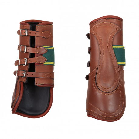 These closed cross-country boots completely protect the horse’s limbs. Its four brass buckle fastening system allows an easy and accurate adjustment. The boots are lined with Neoprene® foam for and can be quickly and easily cleaned with water. Elastic parts are available in brown or black upon request.
